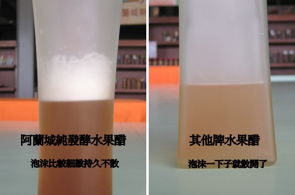 2. 水果發酵之後的口感絕對會改變,例如:楊桃純釀醋的味道不應該像楊桃汁的味道,也就 是說如果水果醋喝起來上述的味道就是果汁或香料泡的,不是純釀的,真正純釀的應該是有發酵的味道,並在口齒間留下水果酒香的味道,但並沒有酒精成份。而且 製成ㄉ時間通常都要一年以上才算釀造..